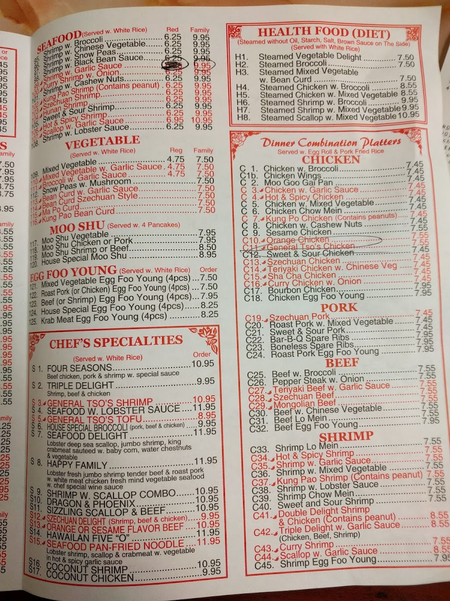 The menu features a delightful array of dishes that cater to every craving. Starting with appetizers, the Egg Rolls (US$1.10) and Vegetable Rolls (US$1.00) set the stage for a satisfying meal. Notably, the General Tso's Chicken has garnered a special place in the hearts of locals for its perfect spicy kick. For noodle lovers, the Chicken and Vegetable Mei Fun ($7.50 each) are must-tries, while the Moo Shu options, including the House Special Moo Shu at $8.25, offer a flavorful experience.